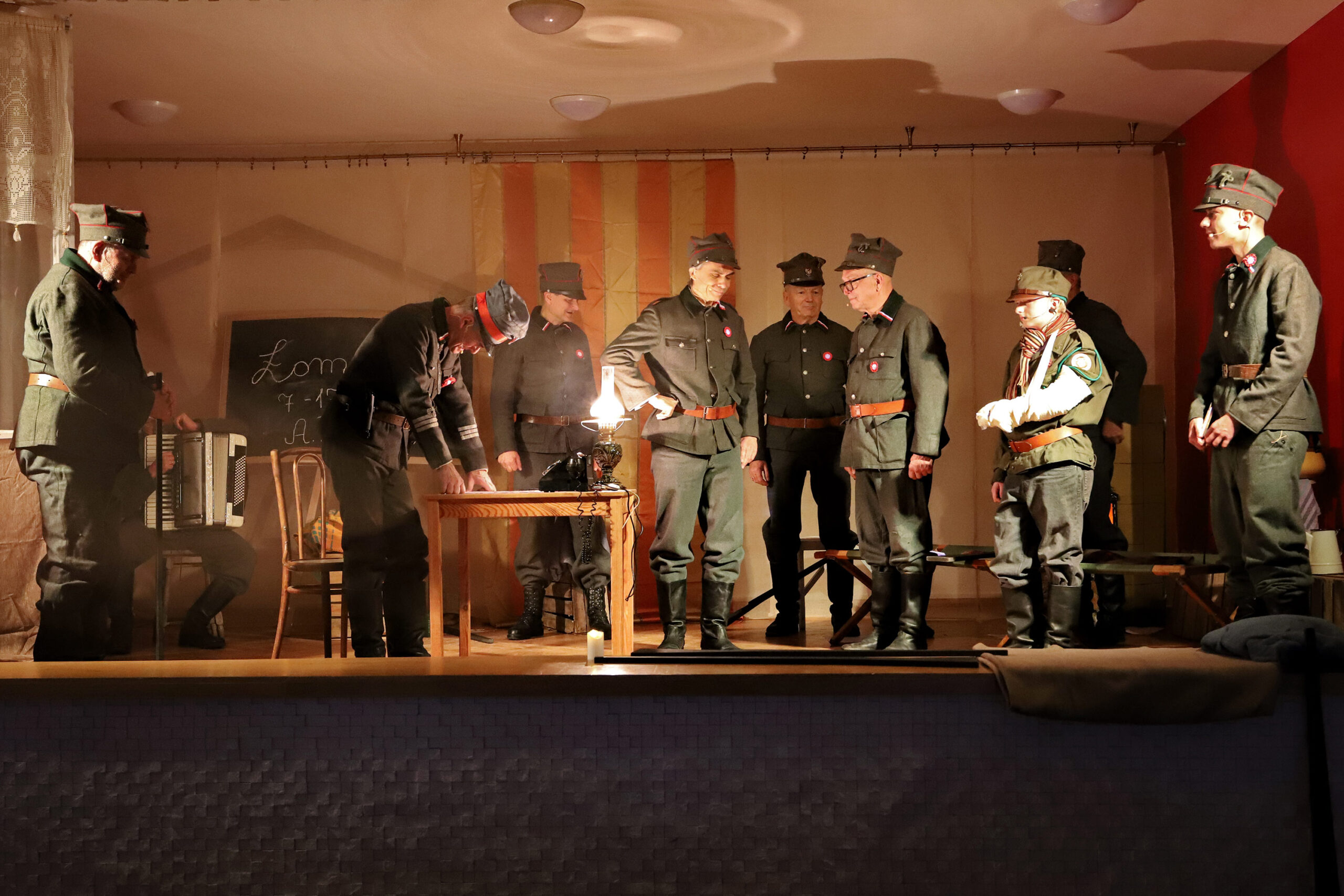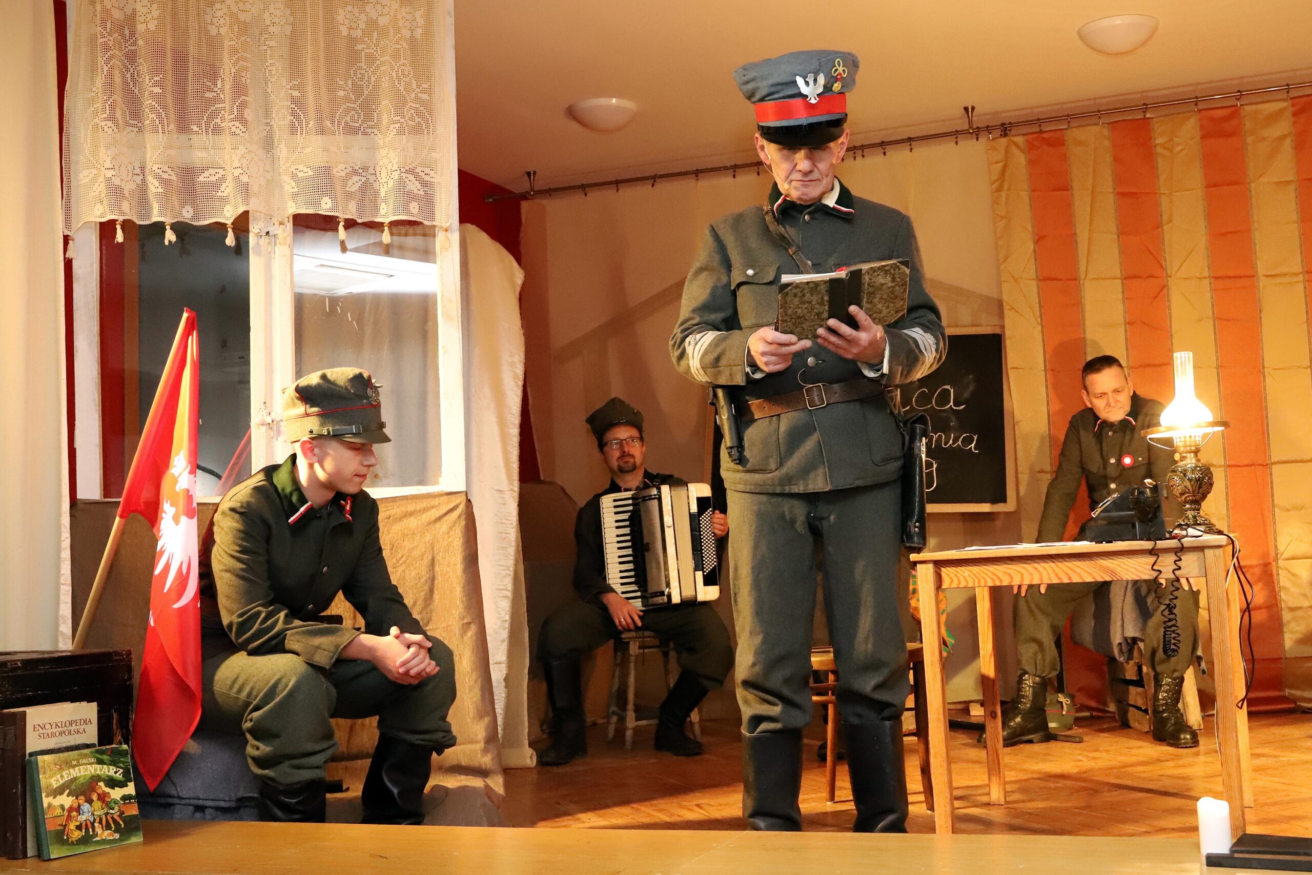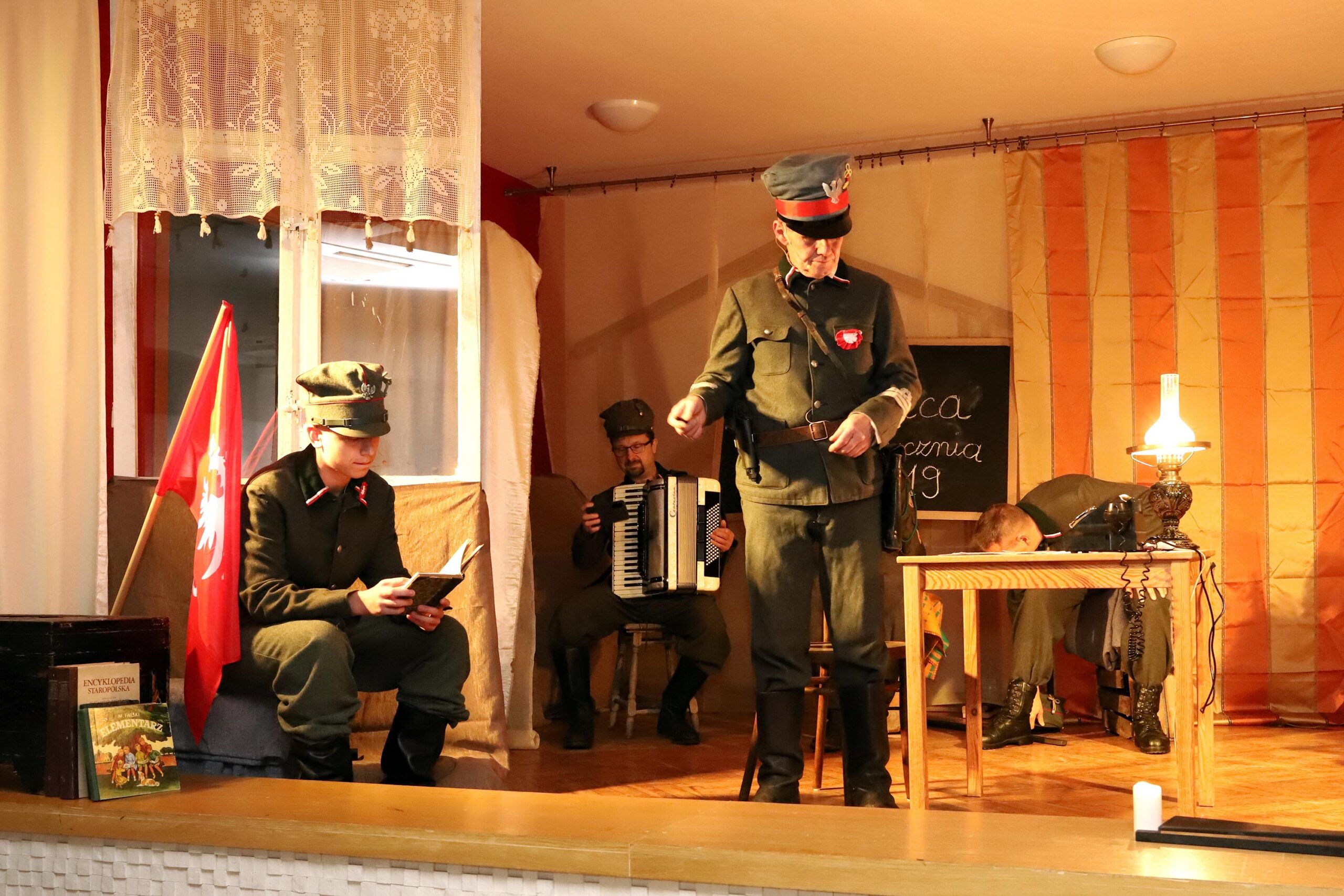 Podczas inscenizacji wybrzmiała Marsylianka Wielkopolska oraz pieśń „Hej, nasza kompania tam w okopach stoi”. Wzruszającą kulminacją był apel poległych pod Łomnicą, odczytany przez Marka Fludrę w roli Stanisława Celichowskiego. Uczestnicy zgromadzeni w sali OSP w Kórniku nagrodzili artystów gromkimi brawami.